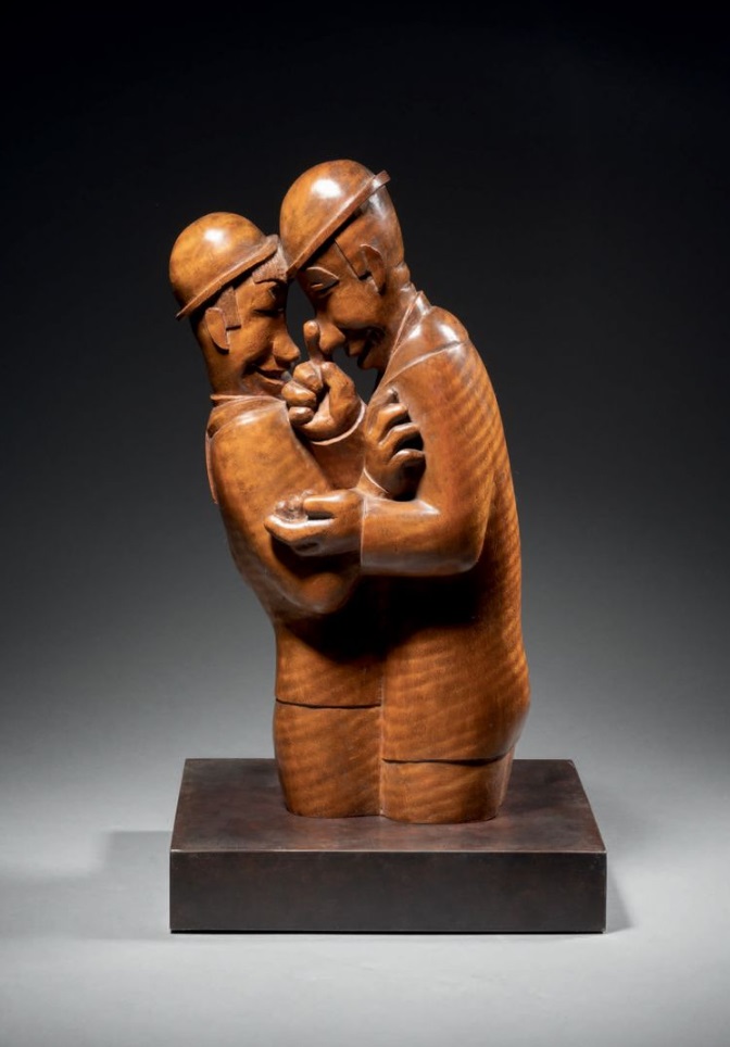Lot 65. Jean LAMBERT RUCKI (1888-1967). Confidence – c. 1923-25. Sculpture en noyer. Taille directe. Monogrammée sous la base. Pièce Unique. H. 32 cm Provenance : Collection particulière Paris Expositions : Centenaire de la naissance de Jean Lambert-Rucki, Galerie Jacques De Vos, Paris Oct./Nov. 1988 (Bronze). Lambert-Rucki, Les Parisiens et les autres, Galerie J. De Vos, Mai/Juin 1993. Lambert-Rucki, De Vos & Giraud Gallery, New York, Nov./Déc. 2006 (Bronze). Jean Lambert-Rucki, 1888-1967, Arthur Wniarski, Villa La Fleur, Konstancin-Jezornia (Varsovie), Pologne, 21 sept – 21 déc 2017. Bibliographie: Jean Lambert-Rucki, 1888-1967, Arthur Wniarski, Villa La Fleur, Konstancin-Jezornia (Varsovie), Pologne, reproduit p.80 Estimate 20,000 – 30,000 euro. Binochet e Giquello. 04/15/21. Sold 20,000 euro