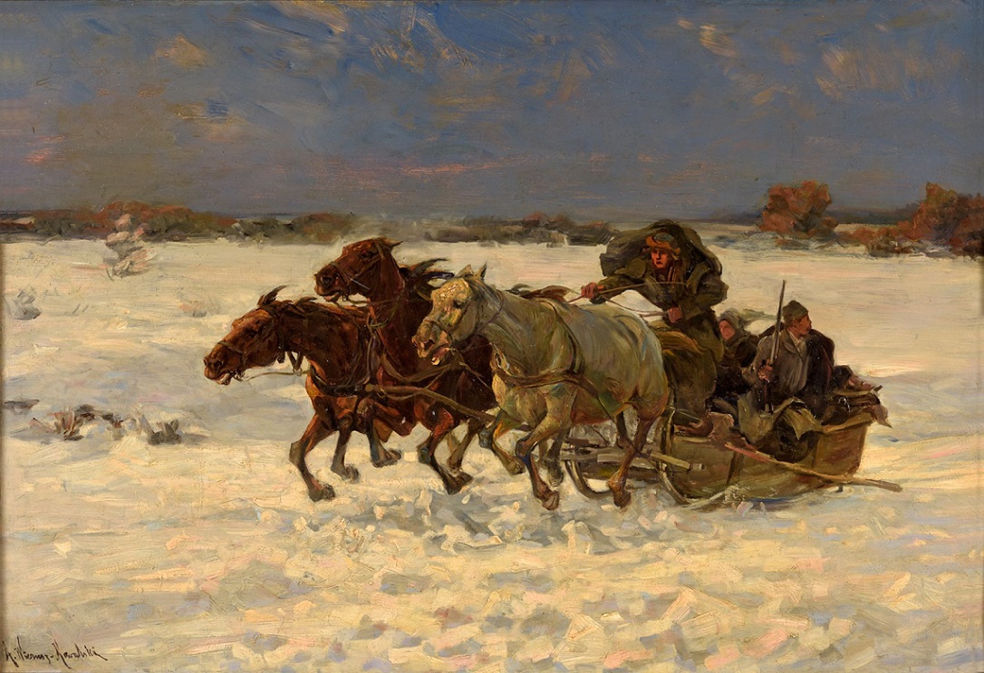Lot 1045. Wierusz-Kowalski, Alfred von 1849 Suwalki – 1915 München (zugeschr.) Von Wölfen verfolgt.