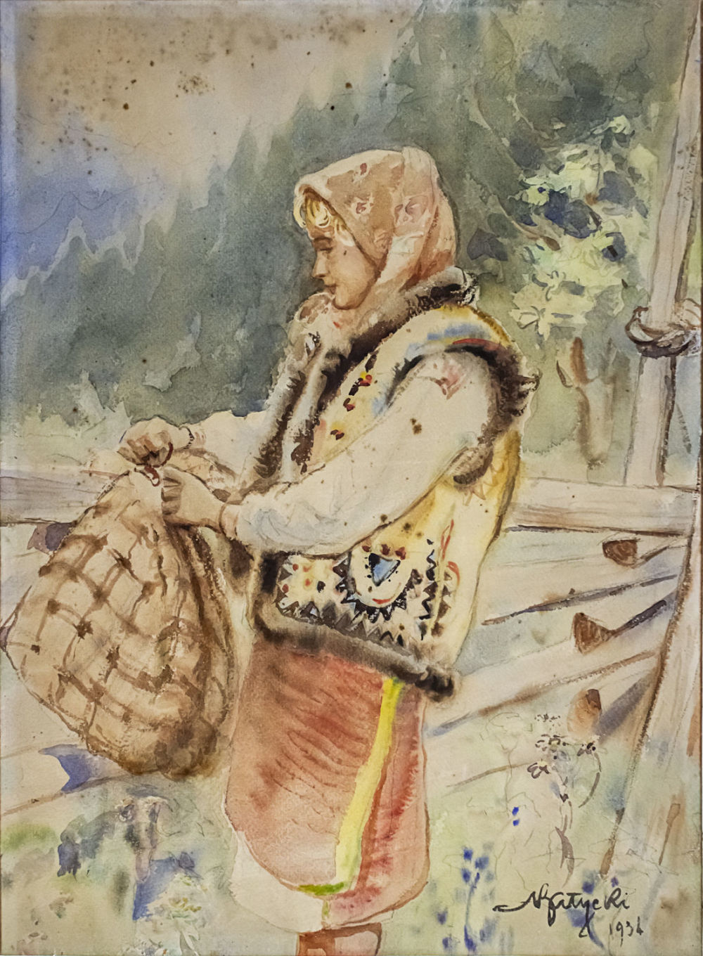 Malarz, który przed wojną często przedstawiał tematy związane z huculszczyzną. Młoda dziewczyna jest właśnie z tego okresu. Jest to bardzo dobra akwarela mająca coś w sobie z prac Jarockiego, może nawet bardziej sympatyczniej przedstawiona została portretowana. Druga akwarela z młodym mężczyzną stojącym z tobołem i piłą do cięcia drzewa (wędrowny drwal?) została prawdopodobnie również namalowana w okresie międzywojennym, choć nie jest datowana. Adam Batycki to artysta mało reprezentowany na aukcjach w Polsce. Większość kupi i możno przepłaci słabego Fałata a czy ktoś zdecyduje się kupić te akwarele prawie za bezcen, bo obecnie cena wyjściowa to jedynie $50.