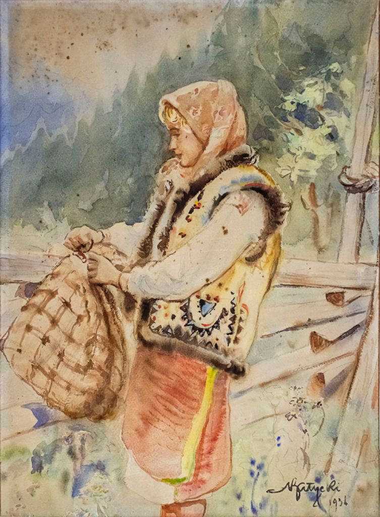 Lot 153. Adam Batycki (Polish, 1886-1970). Young Woman, watercolor on paper, 1934. Signed and dated. 74x54cm. Minor stains. Estimate $100 – 200. Pasarel. 04/20/21