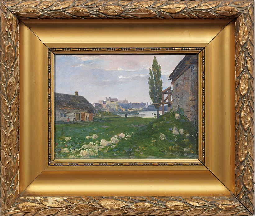 Lot 1628. Antoni Gramatyka (1841 Kalwaria Zebrzydowska – 1922 Krakau). Gehöft am Weichselufer mit Blick auf das Benediktinerkloster Tyniec bei Krakau. Gramatykas außerordentliche Begabung für die Wiedergabe von atmosphärischen Stimmungen wie detaillierten Interieurs macht ihn zu einem der großen Realisten der polnischen Malerei im 19. Jh.; Seine Ausbildung erhielt er an den Kunstakademien in Krakau und Wien. Ab Mitte der 1870er Jahre ließ er sich in Krakau nieder und suchte seine Motive vor allem in der ländlichen Umgebung der Stadt. Öl/Karton. R. u. sign.; 24,5 cm x 33,5 cm. Rahmen. Oil on cardboard. Signed. Starting 1,200 euro. Kunstauktionshaus Schloss. 05/07-08/21. Sold 1,200 euro