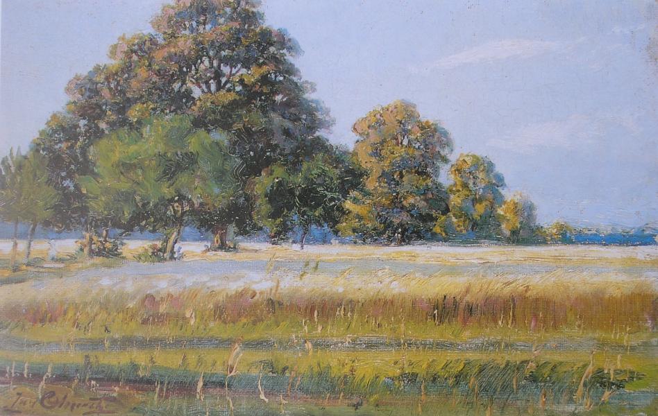 Jan Gwalbert Olszewski. Pejzaż spod Trzebnia, 1920. Źródło: Altius