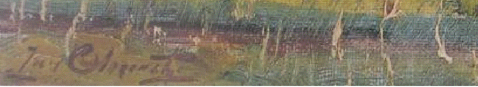 Dodam w tym momencie, że sygnatury z obrazu u Dobiaschofskiego i z Desy-Unicum nie pokrywaja się z sygnaturami Jana Gwalberta Olszańskiego z innych jego prawdziwych prac. Po kolej: 1) z 1920 roku na spokojnym letnim pejzażu sprzedanym w domu Altius (http://www.altius.com.pl/index.php?&aukcje_id=17&obiekty_id=3591&disp=ikony), obrazu bardzo odbiegającycm od omawianych powyżej dwóch prac.