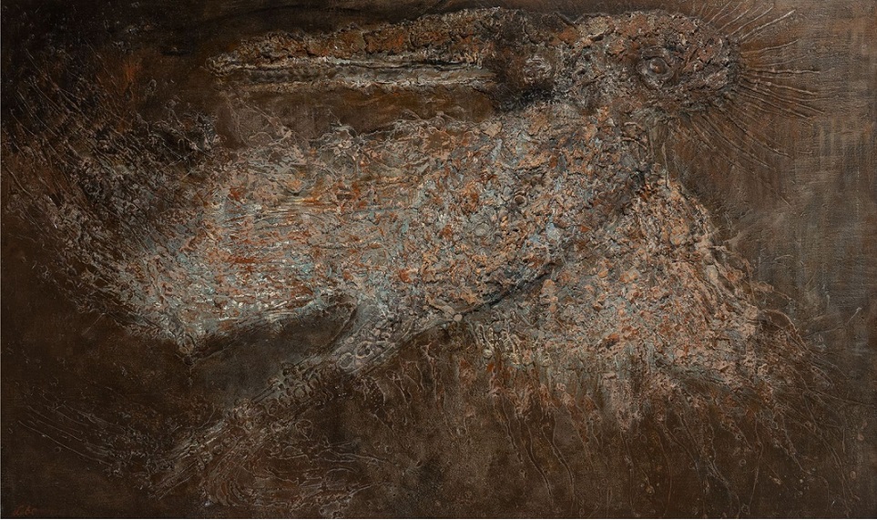 Lot 271. Jean (Jan) Lebenstein, 1930 – 1999 Pologne. Petrified Flight (1964). Oil on canvas. Sig. ’64 and sig. on back 1964 with title, 97 x 161,5 cm. On back old label “LV n°1996” and stamp “Douane France 1967”. Estimate 18,000 – 28,000 euro. De Vuyst. 05/15/21