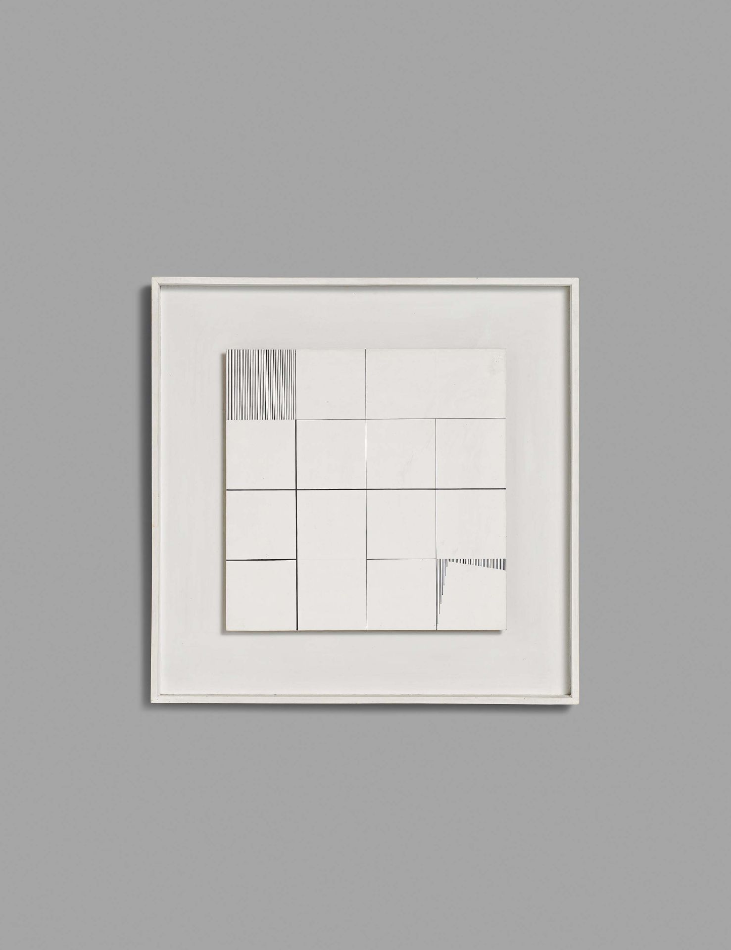 Lot 438. STAZEWSKI, HENRYK Warsaw 1894 – 1988. Relief nr. 44, 1974. Mixed media on fibreboard in artist’s frame. 60,5 x 60,5 x 3,5cm. Signed on the frame rear panel: H. Stazewski. Here additionally inscribed: Nr. 103/19. Underneath illegible stamp. Framed. Provenance: – Private collection Berlin. Exhibitions: – Galerie Meißner, Hamburg 1985. Estimate 12,000 – 18,000 euro. Van Ham. 06/12/21