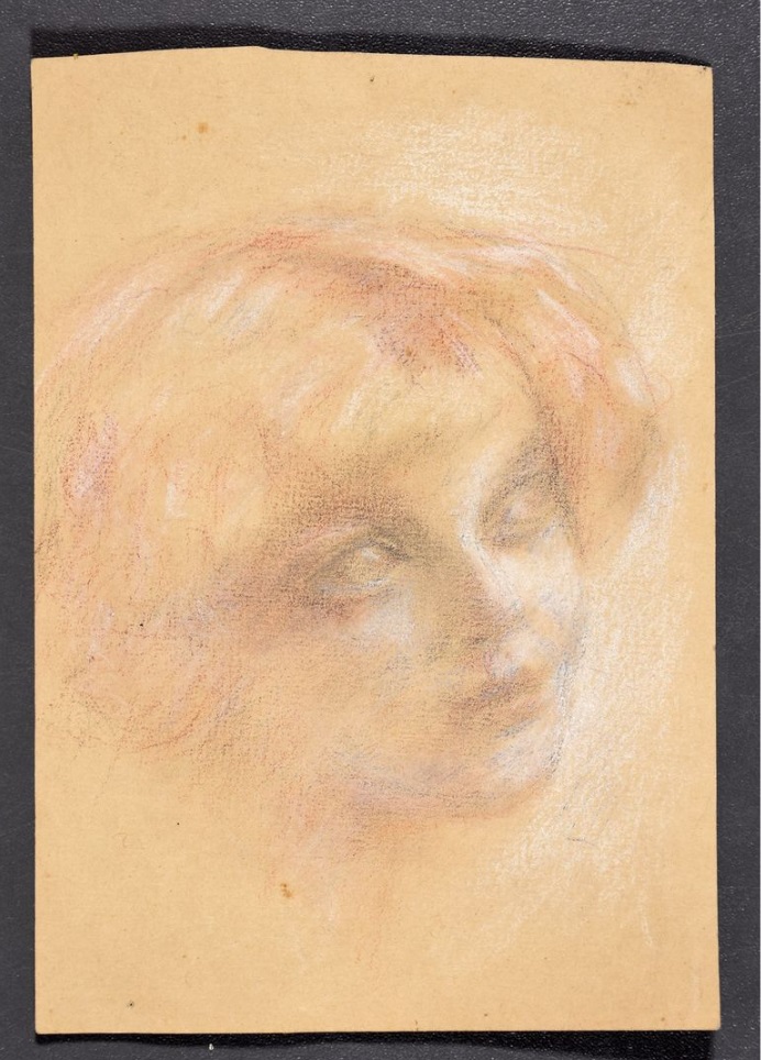 Lot 321. MATAWOWSKA, Jadwiga. Visage d’enfant. Dessin, crayons noir et sanguine, Ø 7,5 cm (rond), papier vélin glacé, non signé (sous enveloppe avec mention ms. “Fragil Portrait petite fille” au stylo-plume) “par j. Matawowska” (autre main, au stylo-bille). Joint, un dessin par la même artiste : Étude pour un visage de petite fille. Craie blanche, bistre et fusain, 15,5 x 11 cm, papier vergé, non signé. (2 pcs). Estimate 150 – 200 euro. Arenberg Auctions. 06/17/21