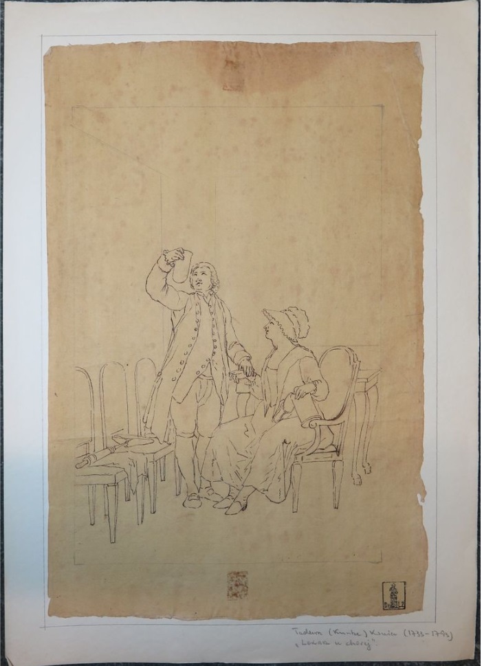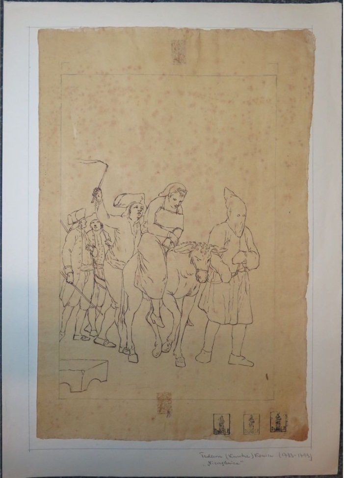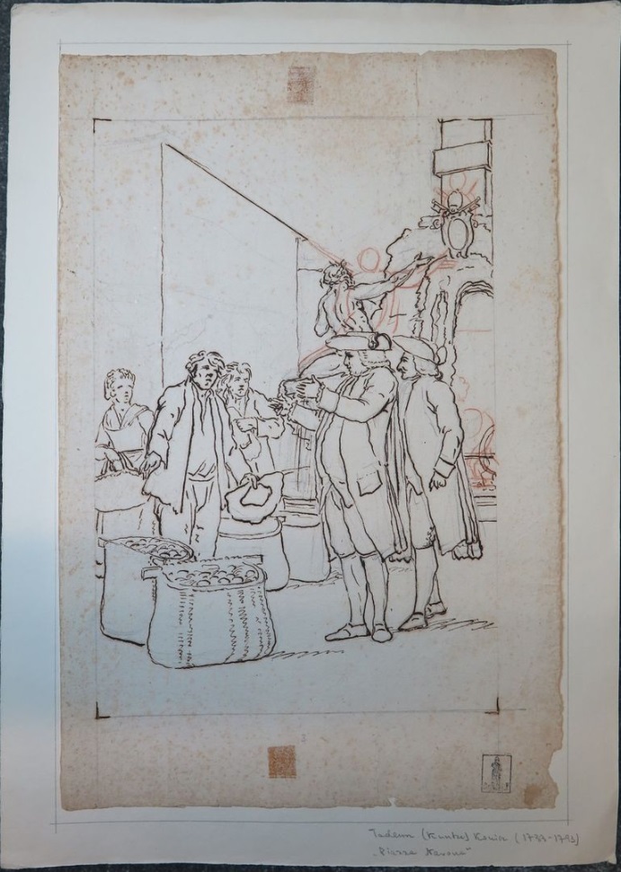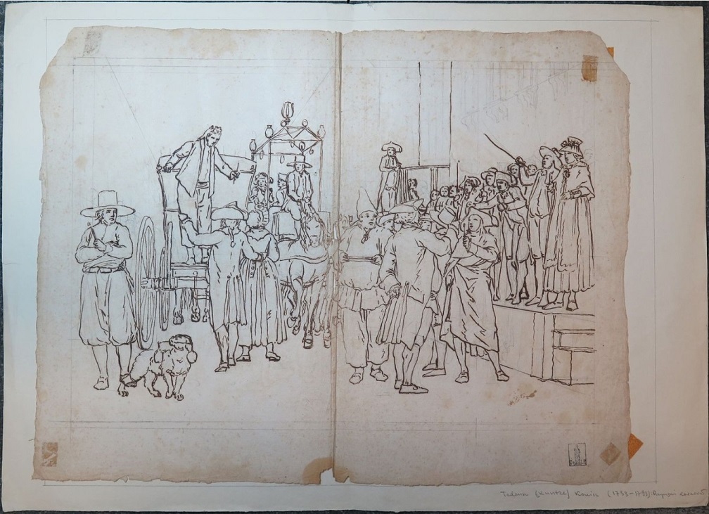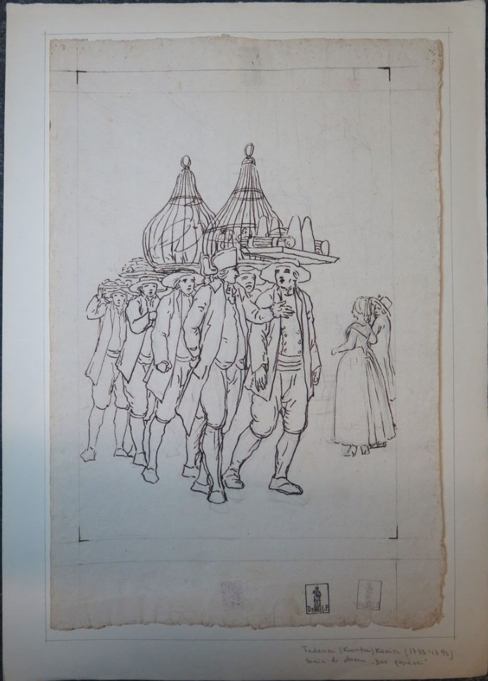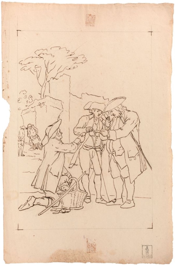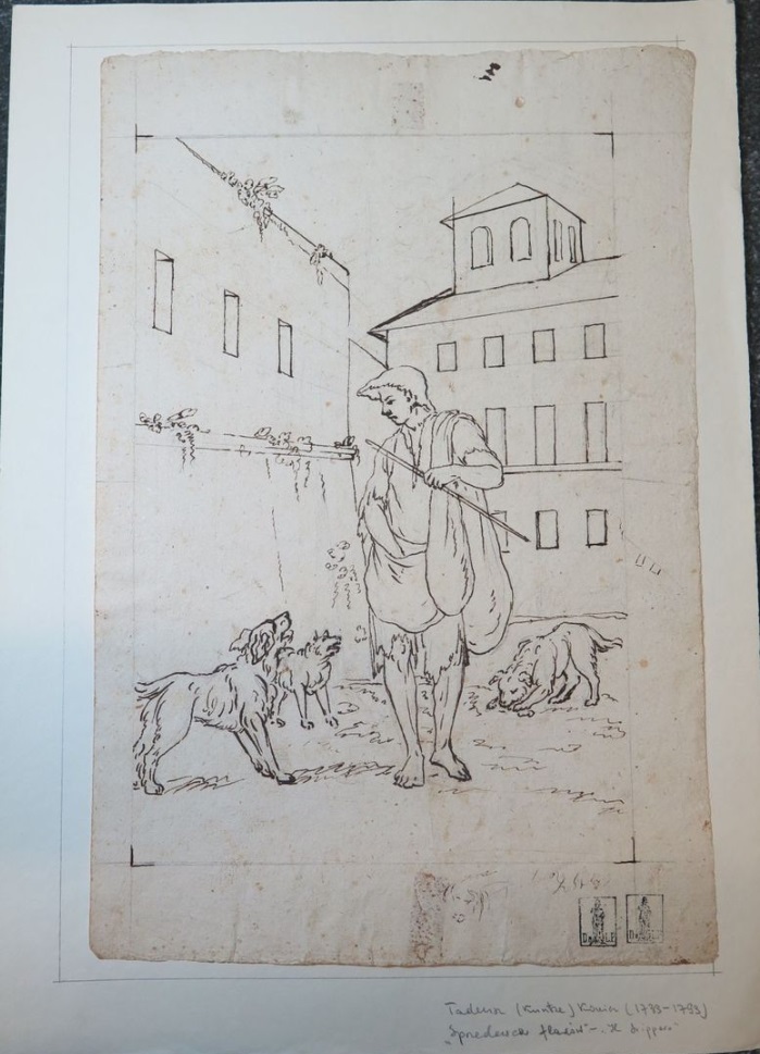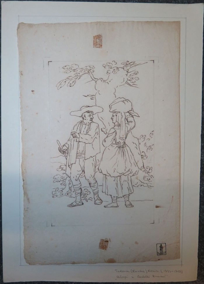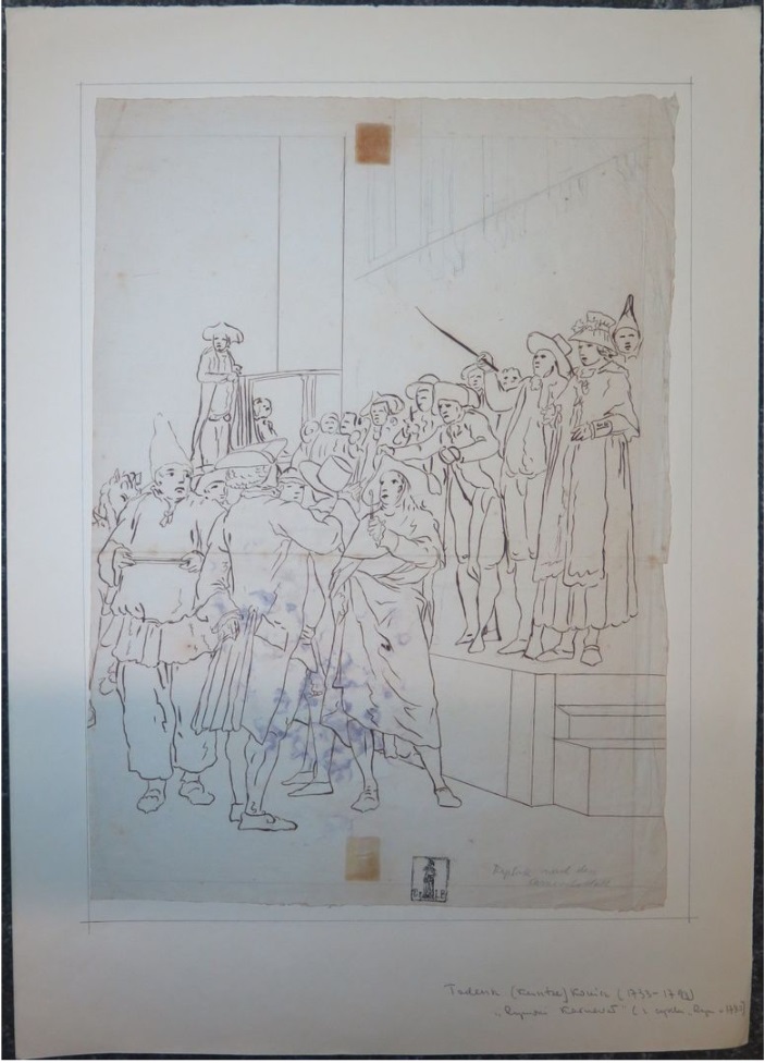 Lot 64. Tadeusz KUNTZE, dit aussi Taddeo POLACCO Zielona-Gora, 1727- Rome, 1793. The buyers of antiques, pen and brown ink, black chalk, inscribed, by T. Kuntze. On joint neuf autres dessins du même artiste. Ensemble de 10 dessins. Sans cadres, 43,50 x 29 cm (17,13 x 11,42 in.). Provenance : Collection Ludwig Pollak, son cachet (L.788b) en bas à droite. Collection Witold Zahorski ; Puis par descendance. Bibliographie : Zuzanna Prószynska, «Kuntze, Tadeusz», in ‘Slownik artystów polskich i obcych w Polsce dzialajacych’, t. IV, Wroclaw, 1986, p. 372. Paolo Erasmo Mangiante, ‘Goya e Italia’, Saragosse, 2008, p. 176, fig. 220, p. 184, note 11 et p. 282. Kamila Szparkowska, ‘Tadeusz Kuntze, il Taddeo polaco, el gran pintor europeo del siglo XVIII y sus conexiones con España’, thèse de doctorat, Madrid, Universidad Complutense, 2015-2017, p. 750 et repr. p. 753. Estimate 4,000 – 6,000 euro. Artcurial. 06/09/21. Sold 6,000 euro