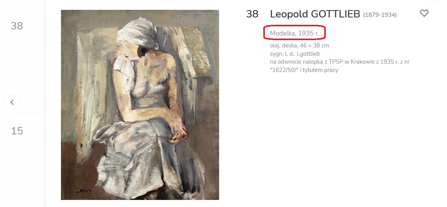 PS. Przeglądałem prace tego artysty na aukcjach w Polsce umieszczone w portalu artinfo.pl. Zaciekawiło mnie przy jednej pracy (Modelka, olej), jej datowanie przez dom aulcyjny na 1935 rok. To dopiero szczerość (dyskretnego) eksperta!