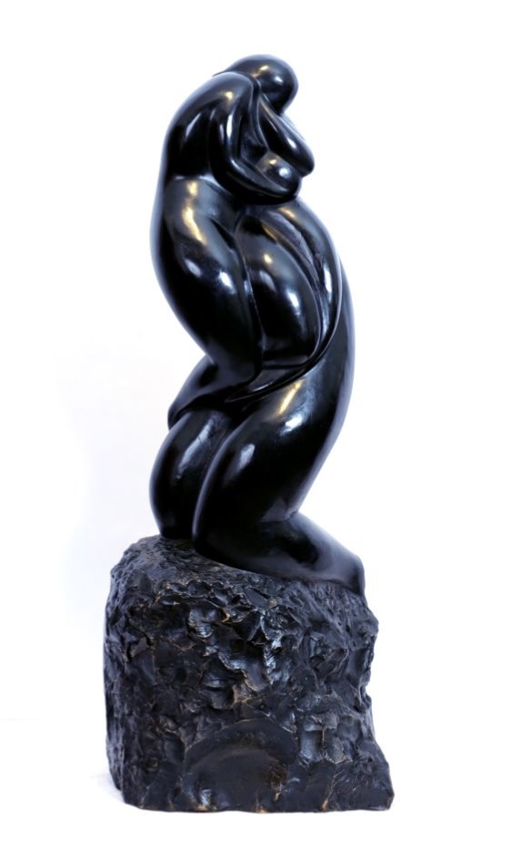 Lot 186. RARISSIME ET EXCEPTIONELLE SCULPTURE 1ere FONTE ANCIENNE “EUX DEUX” OU “ICH DWOJE” D’August ZAMOYSKI (1893-1970) Bronze de 1ere fonte à la cire perdue à patine noire signé sur le devant de la terrasse et cachet rectangulaire au dos C. Valsuani pour Claude VALSUANI. Ce bronze est exceptionelle par son histoire et sa provenance. En effet, nous joignons à cette sculpture un document authentique : Une facture dactylographiée de la galerie ZAK, 16 rue de l’abbaye, place Saint Germain des Prés, en date de l’année 1929. On y apprend que la galerie vend ce bronze après l’avoir exposé. La galerie avait precedemment fait commande de cette oeuvre à l’artiste. Claude Valsuani eut une rapide réputation d’excellent fondeur à la cire perdue. Ce qui incitera de nombreux artistes à travailler avec lui pour son sérieux et son souci de la qualité. Il meurt en 1923. Auguste Zamoyski, né le 28 juin 1893 à Jabłoń en Pologne et mort le 19 mai 1970 à Saint-Clar-de-Rivière, est un sculpteur polonais qui participa au mouvement formiste. Né dans une grande famille de la noblesse polonaise Zamoyski suit des cours de droit, d’économie et d’agronomie à Fribourg puis de philosophie à Heidelberg. Son intérêt pour la théorie esthétique ne faiblira jamais, comme en témoigne la conférence sur L’Art et la Substance qu’il prononça en 1954 au Congrès International de Philosophie, à Sao Paulo. De retour en Pologne, il s’installe à Zakopane, « le Chamonix de la Pologne », lieu de rendez-vous des artistes et des intellectuels polonais de l’époque. Il participe à la création d’un mouvement artistique expressionniste qui prend en 1919 le nom de Formisme qui est « le mouvement esthétique le plus important de la Pologne indépendante ». La caractéristique essentielle du mouvement, selon Léon Chwistek, souvent considéré, à côté de Witkiewicz, comme le principal théoricien du Formisme est « la tentative de créer un style nouveau, sur la base des concepts de réalisme et de beau, qui se développaient à partir de l’expérience des cubistes, futuristes et expressionnistes ».