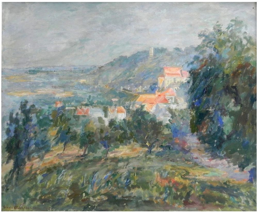 Lot 43. Gizela Klimaszewska (Polish, 1903-1997). View of Kazimierz Dolny, Poland, 1956, Oil on canvas, 56 x 65 cm, Signed and dated. Starting 480 euro. Yair. 09/25/21