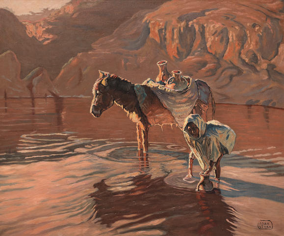 Lot 64. Adam Styka (Polish, 1890-1959). Fetching water, signed ‘ADAM/STYKA’ (lower right), oil on canvas, 74 x 89cm (29 1/8 x 35 1/16in). Estimate £ 15,000 – 20,000 (US$ 20,000 – 27,000). Bonhams. 10/210/21. Sold for £ 15,250 (US$ 20,975) inc. premium