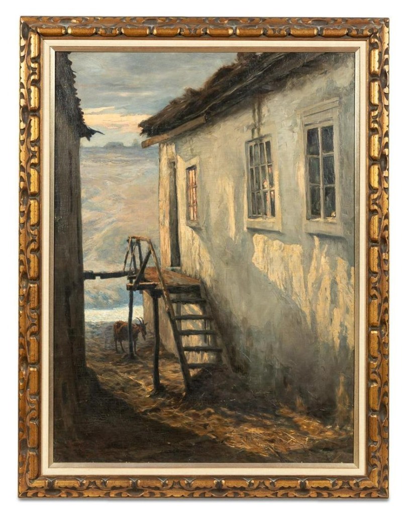 Lot 1069. Stanislaw Bagienski (Polish,1876 – 1948). “Calvary Skirmish“, oil on canvas. Framed. Approx. 29.75″ x 34.75″ (frame), 23″ x 28” (canvas). Estimate $3,000 – 5,000. Ahlers and Ogletree. 10/24/21