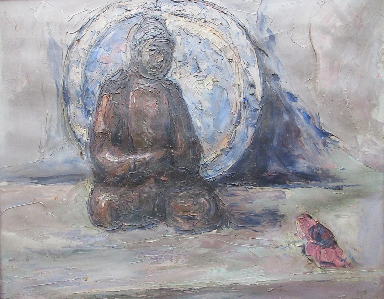 Sailboats at the doc to pogodny i dobry obraz Terlikowskiego. Natomiast poniżej pokazuję Buddę i żółwia i zastanawiam się głęboko „co artysta chciał przez to powiedzieć”. Gdyby nie było tego tytułu to nazwałbym pracę Murzyn siedzący przy rurze. Praca ta nabierze znaczenia i wartości jedynie w katalogu polskiej aukcji.