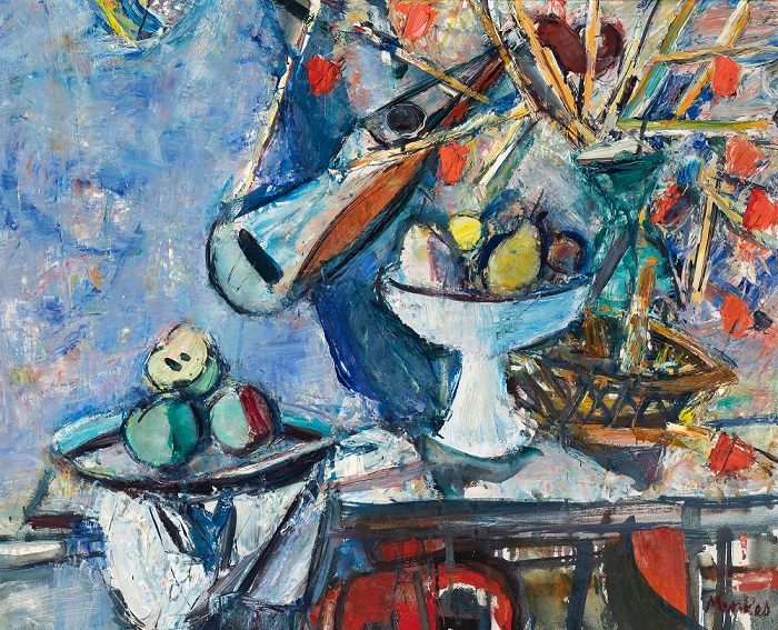 Lot 268. Ryszard Zajac (1929-2016) Polish. “The Blue Jar“, Oil on Canvas, Incised Initials, and Dated ’64, and Signed and Inscribed verso, 32″ x 24” (81.3 x 61cm). Parker Fine Art. 11/04/21