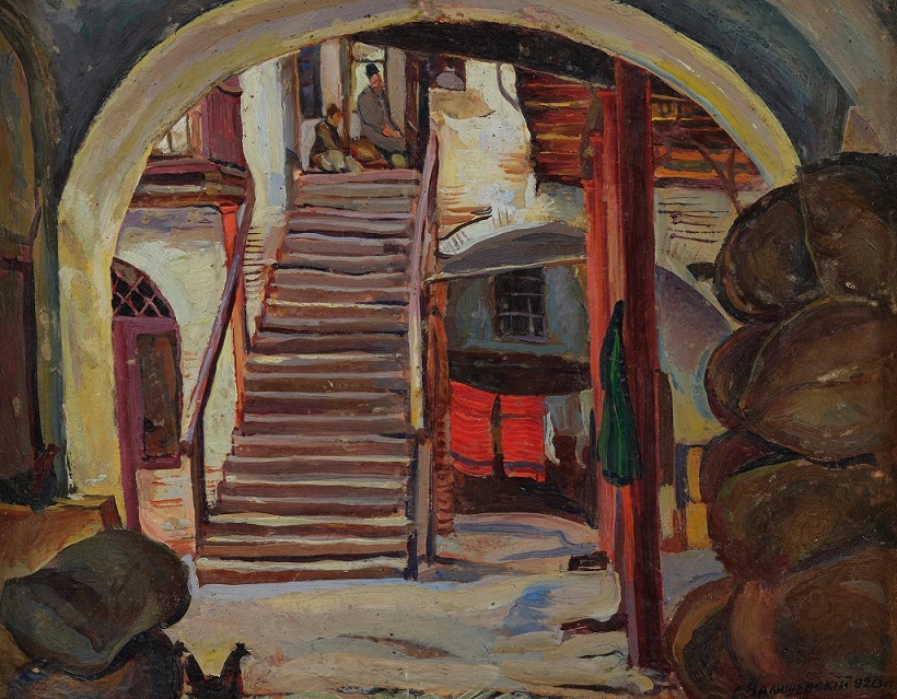 C’est à la fin des années 1920 et au début des années 1930 que Tytus Czyżewski suit la voie des Kapistes et s’intéresse à la question de la lumière et de la couleur. L’œuvre présentée ici témoigne d’un travail rigoureux de recherche sur la lumière. La palette utilisée révèle des couleurs vives comme le jaune et l’orange, mais aussi des couleurs plus nuancées de bleu et de brun. L’artiste dévoile ici la volonté de déployer une variété chromatique très large. Les nombreuses nuances chromatiques créent une vibration visuelle dans la composition.