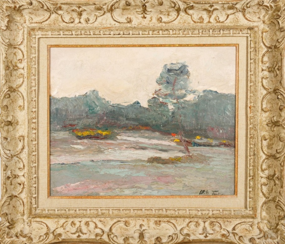 Lot 275. Wlodzimierz TERLIKOWSKI (1873-1951). Paysage, circa 1918. Huile sur toile. Signé en bas à droite, 33,5 x 41,5 cm. (Quelques craquelures). Nous remercions Monsieur W. Vance Brown II de nous avoir confirmé l’authenticité de cette œuvre. Estimate 800 – 12,000. Millon. 11/18/21. Sold 900 euro