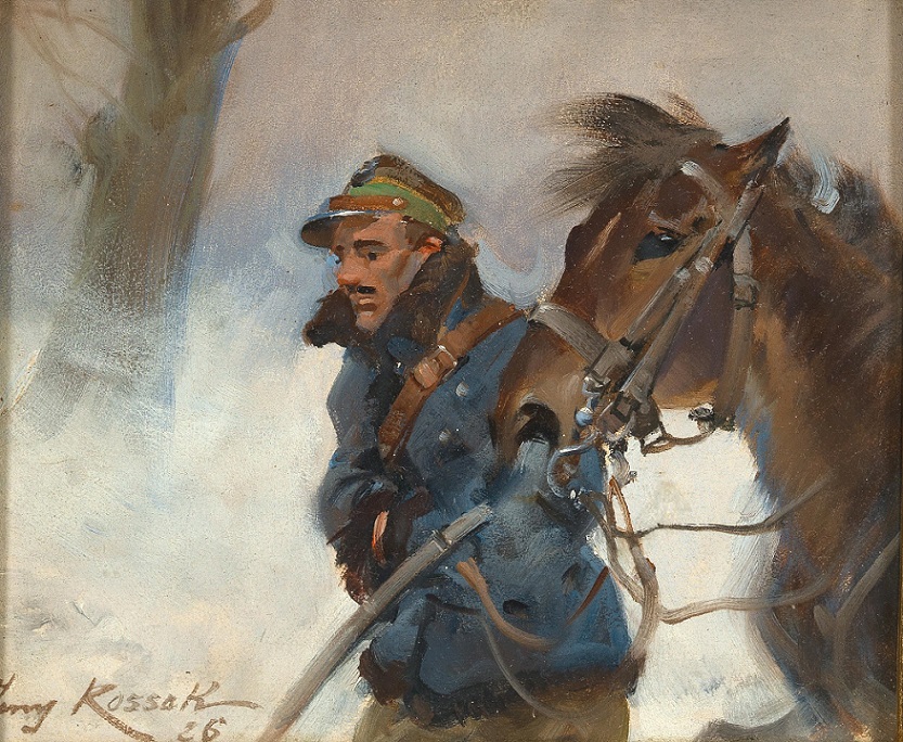 Jerzy Kossak. A Soldier and His Horse Returning Home in a Snow Storm, 1926