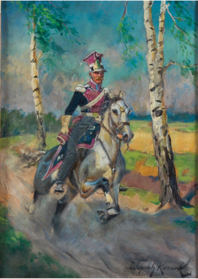 Lot 203. WOJCIECH VON KOSSAK (PARIS 1856-CRACOVIE 1942). Cavalier. Huile sur carton. Signé en bas à droite. H_47,5 cm L_34 cm. Estimate 2,000 – 4,000 euro. Pierre Berge & Associes. 12/20/21. Sold 7,540 euro