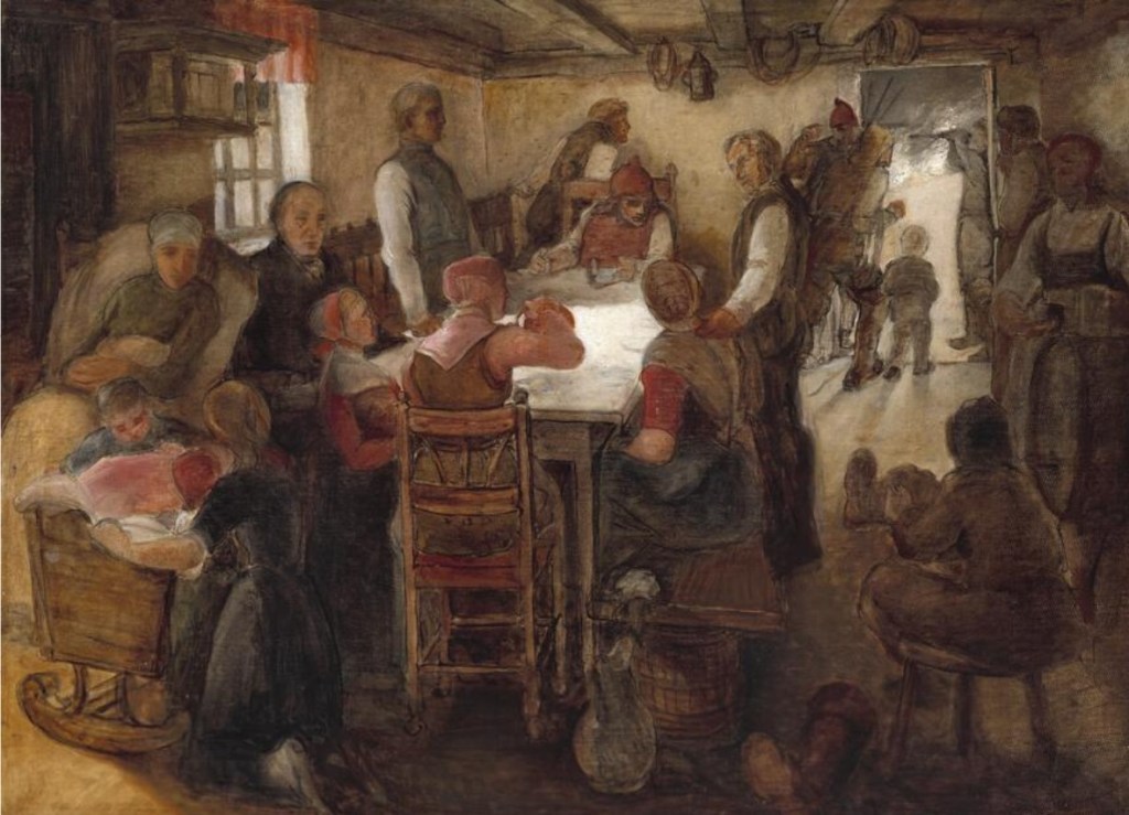 Lot 906/51. Elisabeth Jerichau Baumann (b. Warsaw 1819, d. Copenhagen 1881). “Et nødskud på havet”. Emergency at sea. Unsigned. Oil on canvas. 100×129 cm. Exhibited: ARoS Kunstmuseum, Aarhus, “Elisabeth Jerichau-Baumann – Mellem verdener”, 2021 no. 57, reproduced p. 126. Literature: Jerzy Miskowiak “Elisabeth Jerichau-Baumann. Nationalromantikkens enfant terrible”, Frydenlund 2018, reproduced p. 245. Provenance: Bruun Rasmussen Vejle auction 116, 2008 no. 411, reproduced p. 158. Jerichau Baumann painted other versions of this scene – with greater or lesser variations. Worth mentioning is “Strandfogeden i Harboøre i Jylland modtager i sit hjem meddelelse om en stranding”, (‘The wreck master in Harboøre in Jutland receives news in his home of a wreck), which measures 79×112 cm. Although not a direct repetition, the similarities between that work and the present one is evident, as the same interior and several of the figures are present in both works. Estimate 50,000 – 70,000 DKK. Rasmussen. 03/01/22