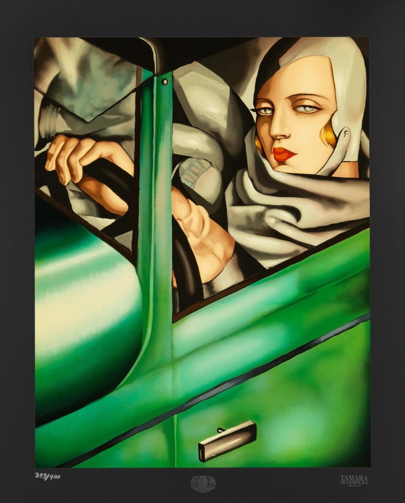 Dla odwrócenia uwagi czytelników proponuje przyjrzeć sie poskiemu rynkowi prac lub ‘prac’ Tamary Łempickiej, gdzie zdesperowane domy aukcyjne starają się sprzedać komputerowe wydruki plakatowe jej wczesnych i bardzo dobrych prac za cenę do 50,000 złotych. Tego procederu dopuszcza się obecnie na aukcji 16 marca Sopocki Dom Aukcyjny plakatem „Autoportret w zielonym Bugatti” (cena wyjsciowa 30,000 zł i wycena 40,000 – 50,00 złotych).