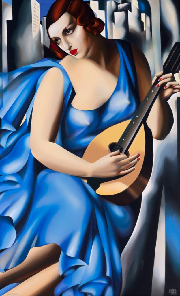 Inny przekręt widzimy w sławnym Polswiss Art gdzie inny plakacik, ‘Dziewczyna z mandoliną’, będzie licytowany 15 marca z wyceną 25,000 – 30,000 złotych. Wg opisu jest to: serigrafia, papier, 98 x 60 cm ed. 153/195, sygn. p.d. pieczęcią TAMARA de LEMPICKA ed. l.d.: 153/195 (praca posiada certyfikat córki artystki Baronessy Kizette de Łempickiej). Dodam, że czasmi do nazwiska córki artystki dpodaje się tytuł ‘baronessa’ co brzmi bardzo poważnie i zdecydowanie podwyższa cenę czegokolwiek.