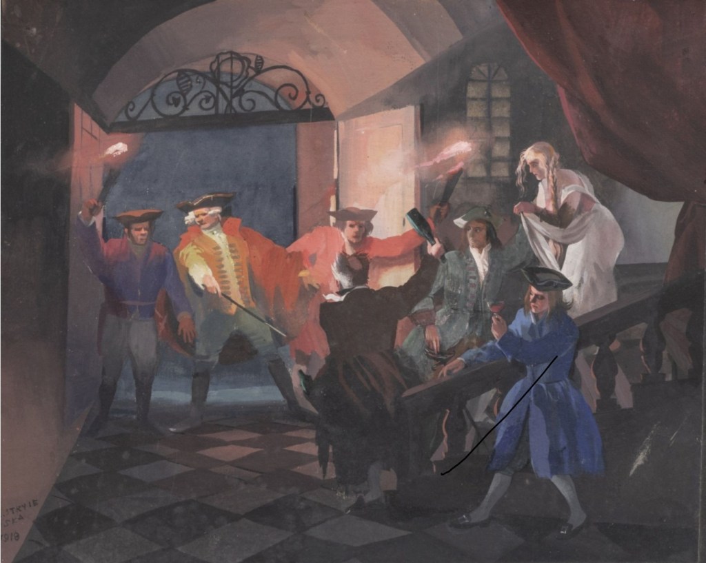 On savait que Zofia Streyjska avait préparé une illustration pour le roman d’Anatole France « La rôtisserie de la reine Pédauque », mais aucune trace n’en n’était conservée. Les deux illustrations d’une rare édition sans date publiée chez Calman Levy, monogrammée S.S., sont jusqu’à présent attribuées à Sylvain Sauvage, qui illustrera le roman en 1935. Il s’agit probablement du travail de Streyjenska. Évoquant Voltaire, aussi bien pour la forme que pour l’ironie, ce roman publié