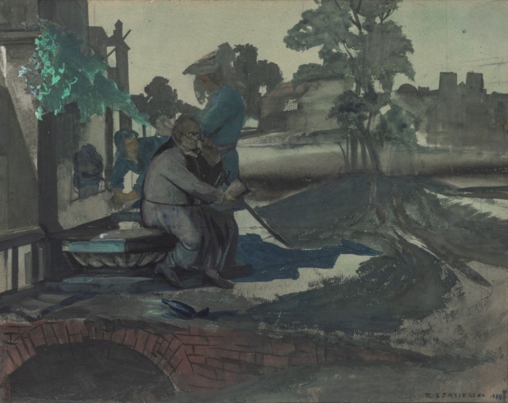 Probablement l’une des plus grandes artistes polonaises, Zofia Ztryjenska est née Lubańska. Elle étudie dans sa ville natale de Cracovie, d’abord à l’école de Leonard Stroynowski (1908), puis celle de peinture pour femmes tenue par Maria Niedzielska (1909-1911). Talentueuse, elle poursuit sa formation à l’académie de Munich sous le nom et l’identité de son frère Tadeusz Grzymała, des mois octobre 1911 à 1912. Elle est grimée en homme, car le système d’enseignement supérieur des arts n’était alors ouvert qu’aux hommes. En 1916 elle épouse l’architecte Karol Stryjeński (1887-1932) qu’elle vient tout juste de rencontrer. Ils divorceront douze ans et trois enfants plus tard, au terme d’une relation tumultueuse faite de ruptures et d’internement psychiatriques. Elle est alors la designer des ateliers de Varsovie, créant de spectaculaires jouets en bois, avant de se consacrer à la peinture.