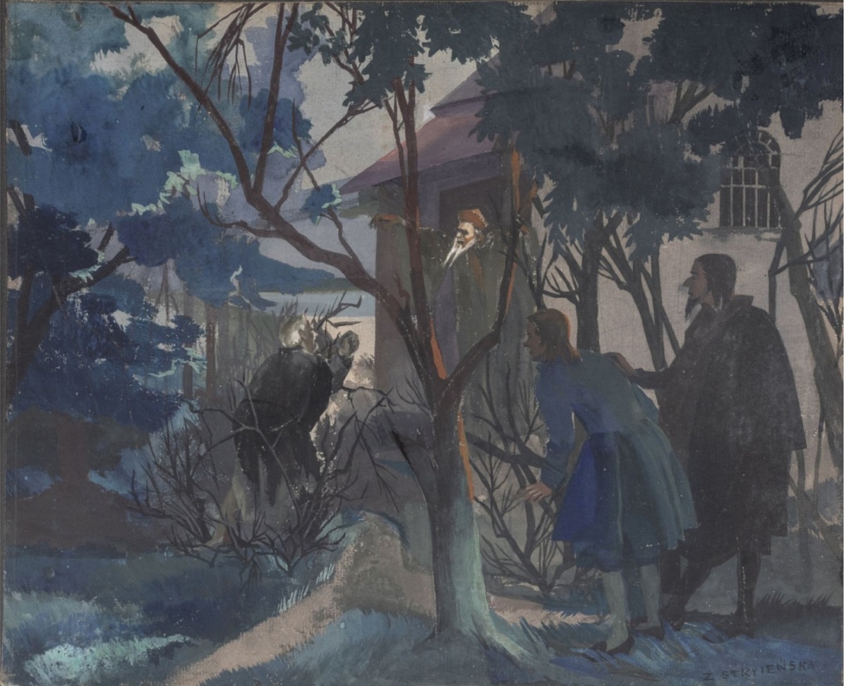 Probablement l’une des plus grandes artistes polonaises, Zofia Ztryjenska est née Lubańska. Elle étudie dans sa ville natale de Cracovie, d’abord à l’école de Leonard Stroynowski (1908), puis celle de peinture pour femmes tenue par Maria Niedzielska (1909-1911). Talentueuse, elle poursuit sa formation à l’académie de Munich sous le nom et l’identité de son frère Tadeusz Grzymała, des mois octobre 1911 à 1912. Elle est grimée en homme, car le système d’enseignement supérieur des arts n’était alors ouvert qu’aux hommes. En 1916 elle épouse l’architecte Karol Stryjeński (1887-1932) qu’elle vient tout juste de rencontrer. Ils divorceront douze ans et trois enfants plus tard, au terme d’une relation tumultueuse faite de ruptures et d’internement psychiatriques. Elle est alors la designer des ateliers de Varsovie, créant de spectaculaires jouets en bois, avant de se consacrer à la peinture.
