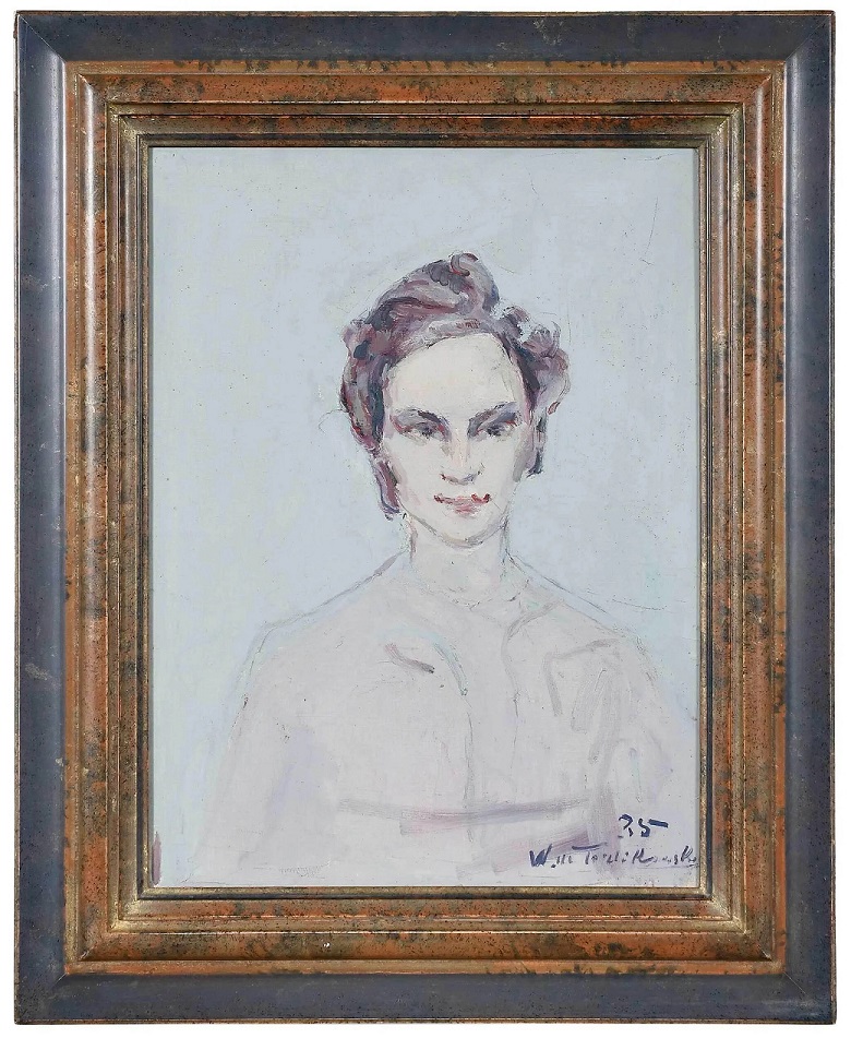 Dwa mało udane portrety kobiet ręki Włodzimierza Terlikowskiego – jeden z nich nosi stempel spuścizny artystycznej w miejscu sygnatury – oraz taka sobie martwa natura kwiatowa. Patrząc na te trzy prace mam wyobrażenie jak nierównym malarzem był ten artysta. Klienci w Polsce, mając przed oczami nadmuchane tam ceny jego prac winni być bardzo krytyczni przy podejmowaniu decyzji i silni w odpieraniu sugestii cenowych. Są prace Włodzimierza Telikowskiego, których kupno chętnie bym rozważył lecz trzeba sporo wysiłku by poprzebierać w tym natłoku.