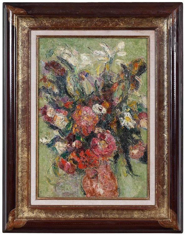 Lot 267. Wlodzimierz Terlikowski (Polish/France, 1873-1951). Vibrant Flowers, 1948, signed lower right “Terlikowsky”, oil on canvas, 21-1/2 x 15 in; modern frame, 30-1/4 x 23-5/8 in. Provenance: Estate of the Artist; Private Collection. Estimate $1,500 – 2,500. Brunk Auctions. 04/21/22