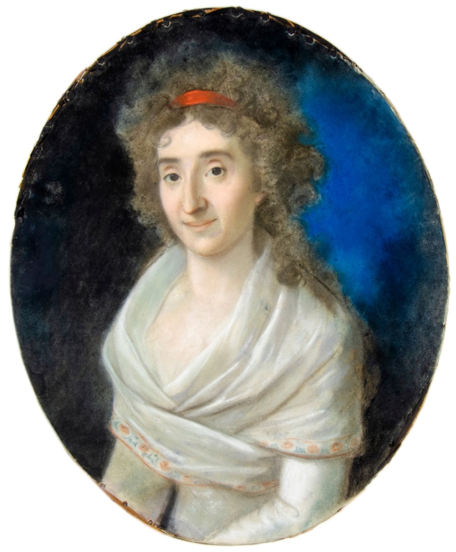 Portret w pastelu przypisany Aleksandrowi Kucharskiemu, być może na podstawie napisu z tyłu ramy oraz okresu w którym osoba portretowana żyła. Nie musi to być praca ręki Aleksandra Kucharskiego, zwłaszcza, że te powielano często (np. Marii Antoniny). Korzystam z okazji by przypomnieć postać polskiego artysty dodająć o nim broszurkę napisaną przez Jerzego Mycielskiego ponad 120 lat temu.