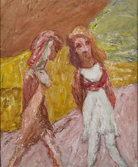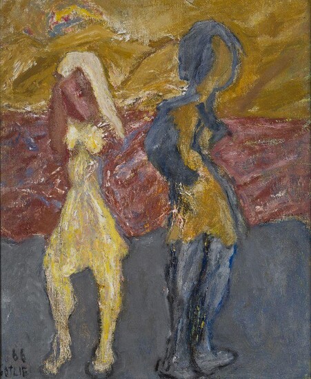 Lot 121. Henryk Gotlib, British/Polish 1890–1966 – Two standing figure, 1966; oil on canvas, signed and dated lower right ‘Gotlib 66’, 61.1 x 50.6 cm. Estimate £800 – £1,200. Roseberys. 05/25/22