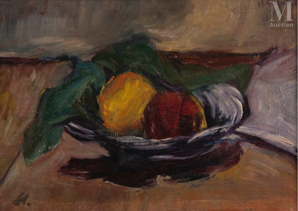 Lot 6. Miron DUDA (Nowy Sacz 1893- Pruszkow 1950). Nature morte au bol et aux pêches. Huile sur toile 46 x 38 cm Signé en bas à gauche “M. Duda”. Estimate 800 – 1 000 €. Millon & Associes. 05/11/22. Sold 4,500 euro