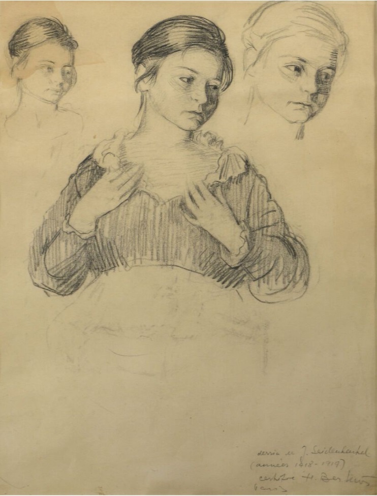 Lot 100. Józef SEIDENBEUTEL (Varsovie 1894 -1923 Otwock). Études de tête de femme, ca.1918/19. Fusain et mine de plomb, non signée. 28 x 21 cm (à vue). Authenticité certifiée par Henryk Berlewi.. Exposition : Présenté dans une exposition non identifiée, en Italie sous le titre ‘Jeune femme’ avec, une attribution erronée à Efraim et Menasze Seidnbeutel. Provenance : Collection KUPFER. Estimate 200 – 300 euro. Oger-Blanchet. 06/16/22