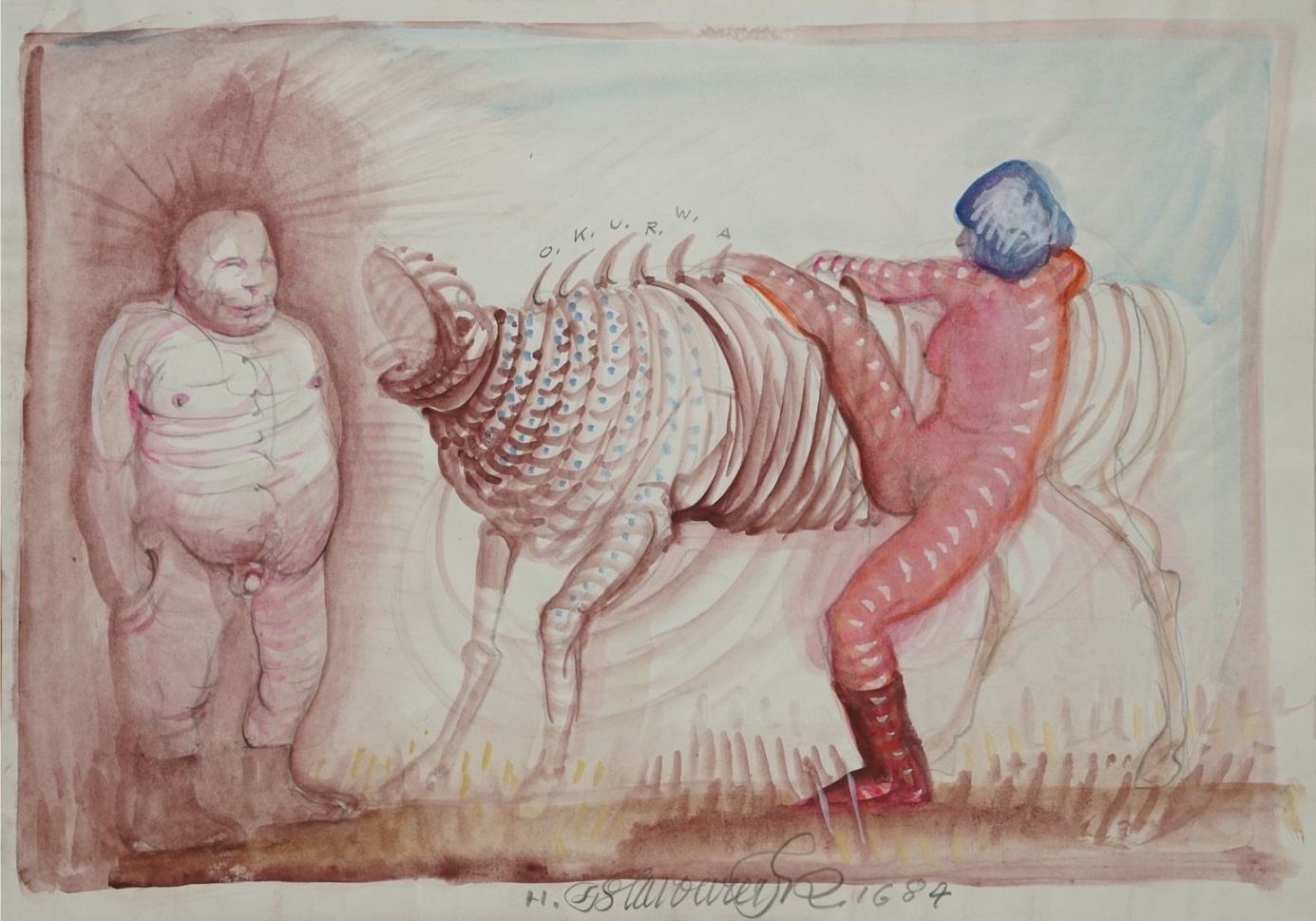 Lot 119. STAROWIEYSKI Franciszek, 1930-2009. Okurwa, 84, aquarelle (traces de plis), signée et datée en bas au milieu, 29,5 x 41,5 cm. Estimate 800 – 1,200 euro. Rossini. 06/29/22. Sold 800 euro