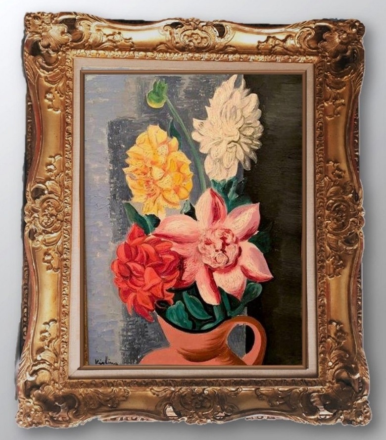 Lot 74. KISLING Moïse 1891-1953 : Bouquet multicolore. Huile sur toile SHG 55×38 cm. Bibliographie : œuvre reproduite dans le catalogue raisonné de l’artiste. Provenance : Ancienne collection Sisman. Estimate 40,000 – 50,000 euro. Chaville Encheres. 07/10/22. Sold 45,000 euro.