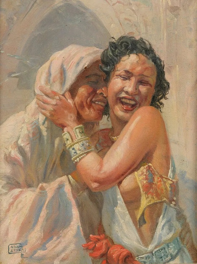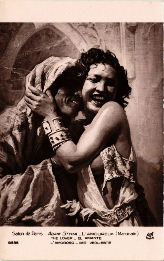 Lot 8. Dans le goût de Adam STYKA (1890-1959) “L’embrassade“, huile sur toile, copie, signature en bas à gauche, 35 x 27 cm. Estimation : 200 € – 300 €. Ruellan. 07/23/22