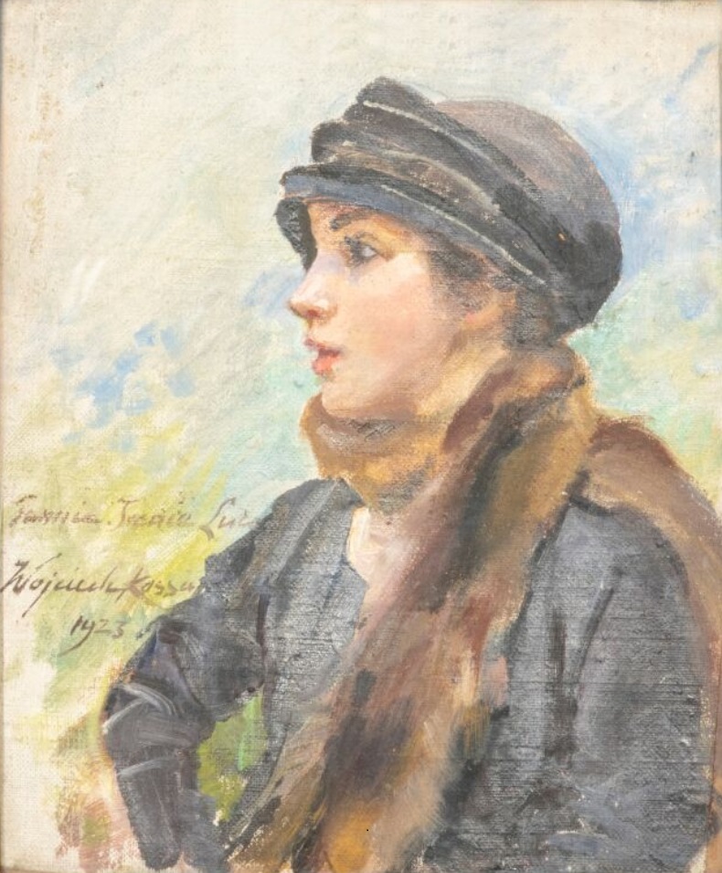 Lot 181. Wojciech KOSSAK (Paris 1856 – Cracovie 1942). Portrait de Mademoiselle Irene Luca, 1923. Huile sur toile contrecollée sur carton. Signée, datée et dédicacée en bas à gauche « Pannie Irence Luca Wojciech Kossak 1923 ». 19,8 × 16,5 cm. Estimate 600 – 800 euro. Ka-Mondo. 06/24/22. Sold 2,200 euro