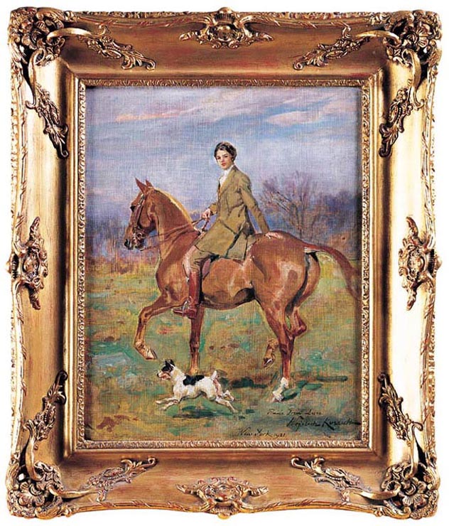 Niewielki portret ślicznej panny, Ireny Luca, pędzla Wojciecha Kossaka. Ciekawe, że dwa lata wcześniej artysta wykonał również konny portret tej panienki o czym można się przekonać wertując katalog firmy Agry-Art, skąd pochodzi poniższa fotografia. Wojciech był kochliwy choć może to było jedynie zamówienie. Jak podaje katalog Agry: Irena Luce, była śpiewaczką, sopranistką Opery Warszawskiej. Z artystą łączyła ją długoletnia przyjaźń. W latach późniejszych wyszła za mąż za Amerykanina Wilsona i zamieszkała w Paryżu.