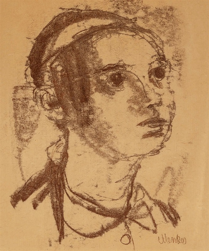 Lot 49. Sigmund Menkes Polish/American, 1896-1986. Head of a Young Boy. Signed Menkes (lr). Ink on paper. Sight 12 3/8 x 10 3/8 inches (31.4 x 26.4 cm). Estimate $300 -500. Doyle. 07/28/22