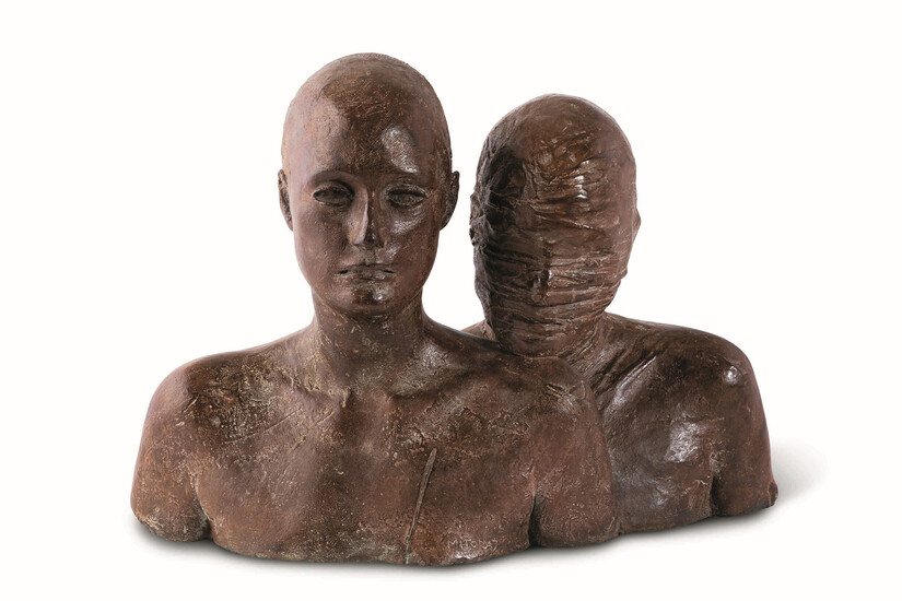 Lot 108. Mitoraj Igor, Coppia per l’eternita II. Firmata in basso al centro al fronte, Scultura in bronzo, fusa a cera persa con patina marrone, W. 60 – D. 30 – H. 43 Cm, Opera registrata presso l’Atelier Mitoraj, Pietrasanta in data 10 marzo 2022 con il n. 1/8 e accompagnata da certificato di autenticit. Estimate 25,000 – 28,000 euro. Cambi. 07/06/22. Sold 26,000 euro
