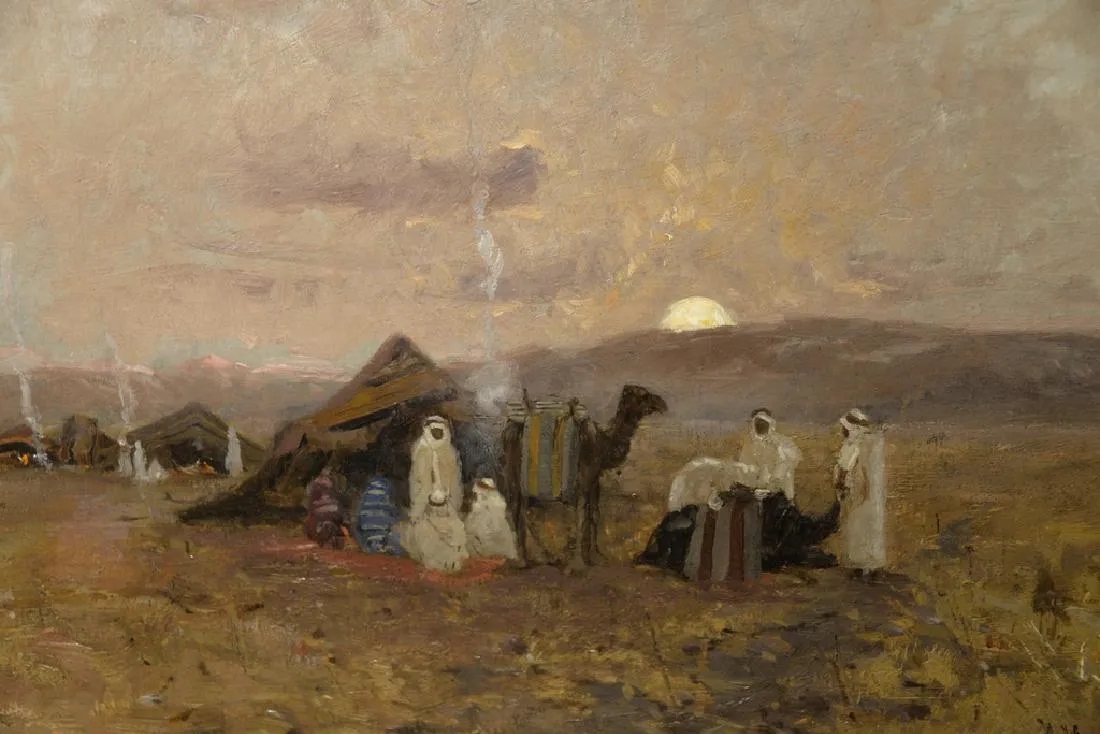 Alfred Wierusz-Kowalski.A BEDOUIN CAMP BY MOONLIGHT