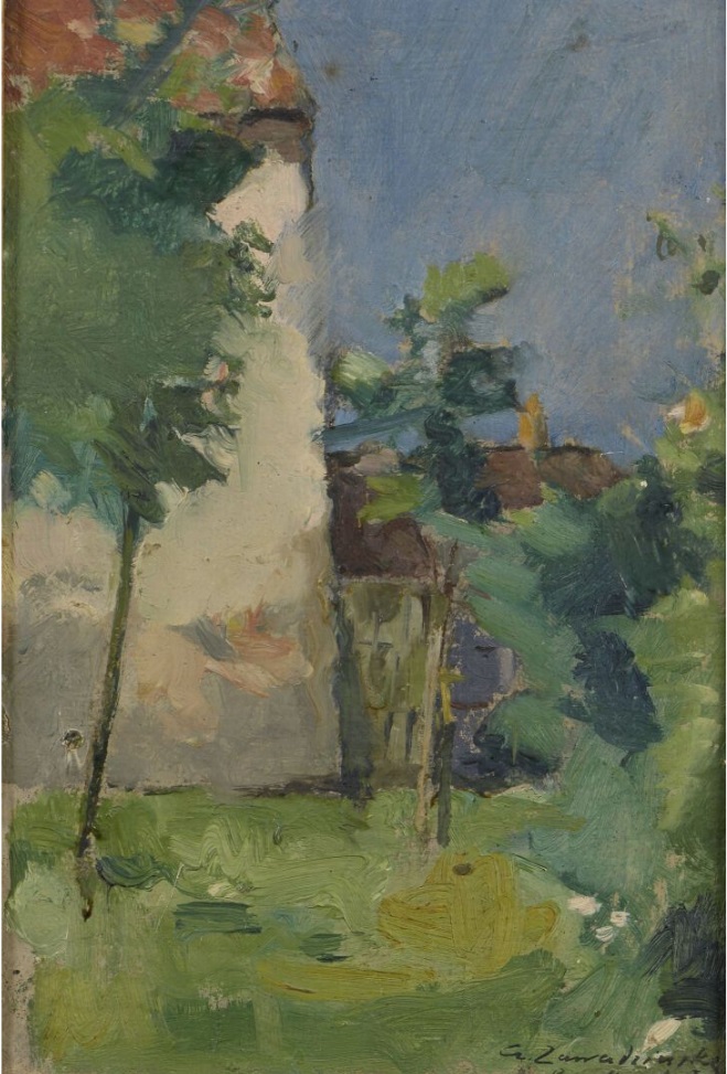 Lot 96. Czeslaw ZAWADZINSKI (Varsovie 1978 – 1936). Paysage. Huile sur carton, signée en bas à droite. 24 x 16 cm. Provenance : Collection KUPFER. Estimate 100 – 200 euro. Oger-Blanchet. 06/16/22. Sold 100 euro