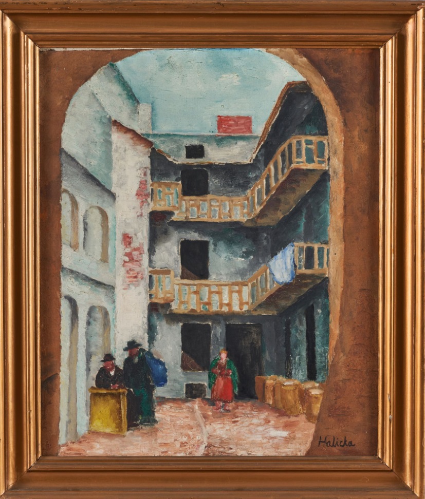 Ładne ujęcie podwórka (chyba) żydowskiej kamienicy w wykonaniu Alicji Halickiej. Dom aukcyjny przypomina nazwisko jej męża, choć nie bardzo wiem co mogło być jego zasługą w tworzeniu tej pracy.