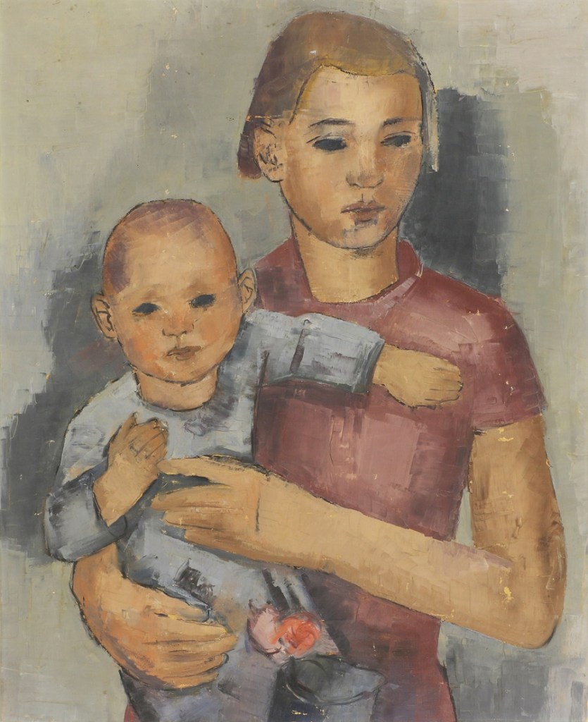 Lot 125. Joachim Weingart (Polish, 1895-1942). Two children, signed and dated ‘Weingart/Paris 1925’ l.r. on folded canvas, oil on canvas, sight size 68 x 57cm, unframed. Estimate £1,500 – £2,500. Sworders. 10/04/22. Sold 3,800 GBP
