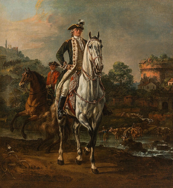The painting is part of a series of four well-known equestrian or horse portraits by Bernardo Bellotto and was created for the Polish King Stanislaus II August Poniatowski (1732-1798). In 1773, Bellotto noted in his records of works delivered for the court: “quattro picolli quadri di invenzione con cavalli presi dalla natura e Figure…”, for which he had received the sum of 200 ducats in total (Kozakiewicz, 1972, p. 388).