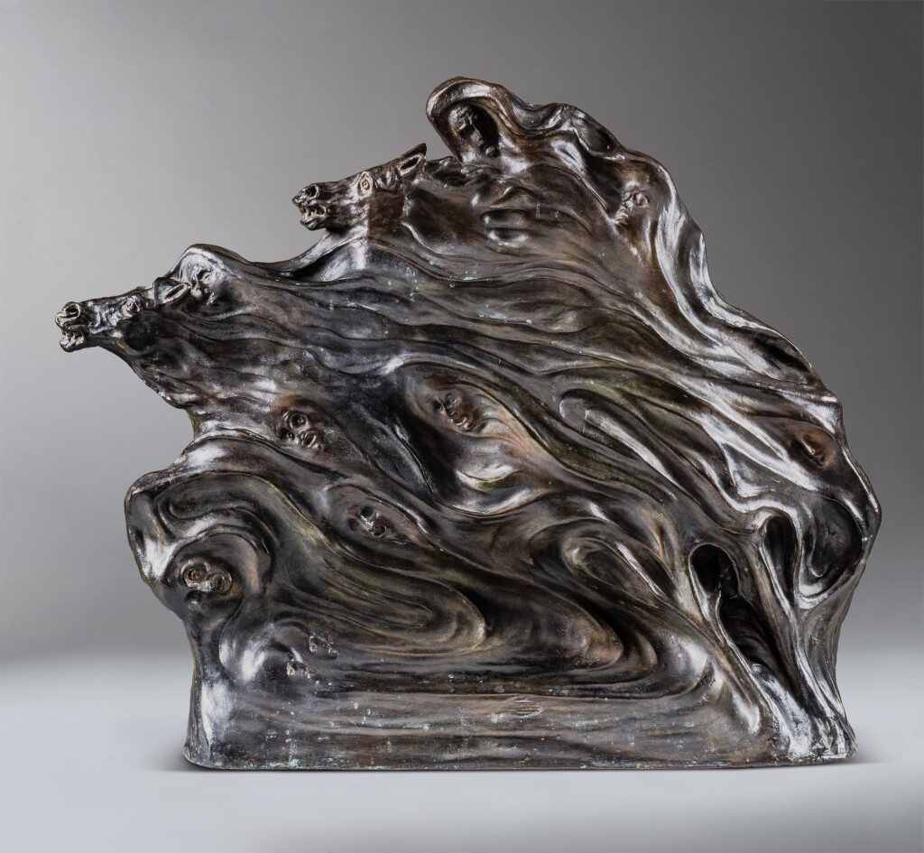 Lot 118. Bolesław Biegas 1877 – 1954. Horses of Hell, bronze, black patina, signed, dated and located B. Biegas / Paris / 1904, inscribed Susse Fondeur Paris, numbered ¼. Cast in 1975, 53 by 64 cm; 20 ⅞ by 25 ⅕ in. Estimate 7,000 – 10,000 euro. Sotheby’s. 11/10/22. Sold 12,600 euro