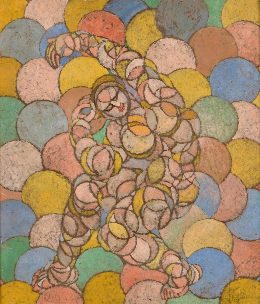 Lot 176. Boleslas BIEGAS (1877-1954). Le danseur de ballet, circa 1918-1920 (Sphérisme). Huile sur carton, Signée en bas à droite. Titrée sur une étiquette au dos. 42,5 x 37 cm. PROVENANCE : Atelier Boleslav Biegas, n° 311 de l’inventaire établi en 1948 ; vente-Ader-Picard-Tajan,Tableaux et sculptures de B. Biegas, 26 octobre 1990 lot n° 75. Un certificat d’authenticité et d’inclusion de cette œuvre au Catalogue critique, à paraître, de l’artiste par Xavier Deryng en collaboration avec la Société historique et littéraire polonaise (légataire universelle de l’artiste) sera remis à l’acquéreur. Estimate 8,000 – 12,000 euro. Crait + Muller. 12/09/22. Sold 8,500 euro