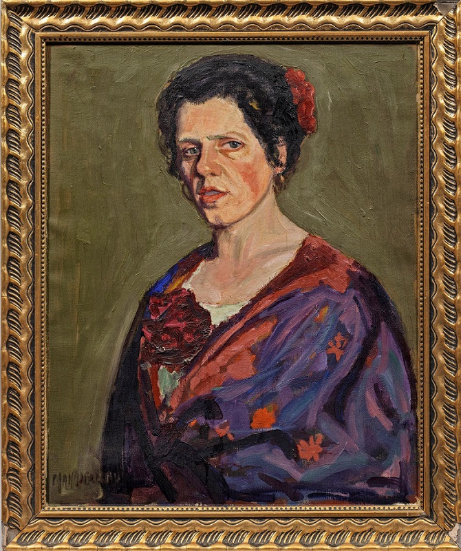 Lot 2539. Ephraim Mandelbaum (Geb. 1884 Lublin. 1942 oder 1943 deportiert). Bildnis einer mit Blumen geschmückten Frau. Expressives, wohl von den Fauvisten beeinflusstes Werk des jüdischen Malers, der in Krakau studierte und 1925 nach Paris ging. Öl/Lwd.; L. u. sign.; 62 cm x 50 cm. Rahmen. Estimate 360 – 720 euro. Schloss Ahlden. 12/04/22. Sold 2,000 euro