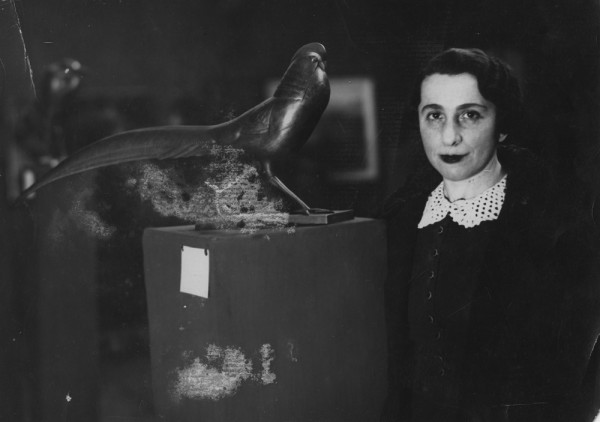 Dość unikatowa rzeźba z lat 30-tych XX wieku Magdaleny Gross przedstawiająca bażanta była licytowana dzisiaj w USA. Artystka wyrzeźbiła serię stylizowanych zwierząt i niektóre spośród nich pojawiają się ‘once in the blue moon’ na aukcjach. Na poniższej fotografii widzimy artystkę na tle tej właśniej rzeźby i może dlatego wylictowano ją za $9,500, co może być rekordem światowym. Gratulacje dla właściciela o ile nie jest nim handlarz.